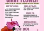 This is a hands-on Project – You’ll complete 2 giant hibiscus flowers with stems to take home!